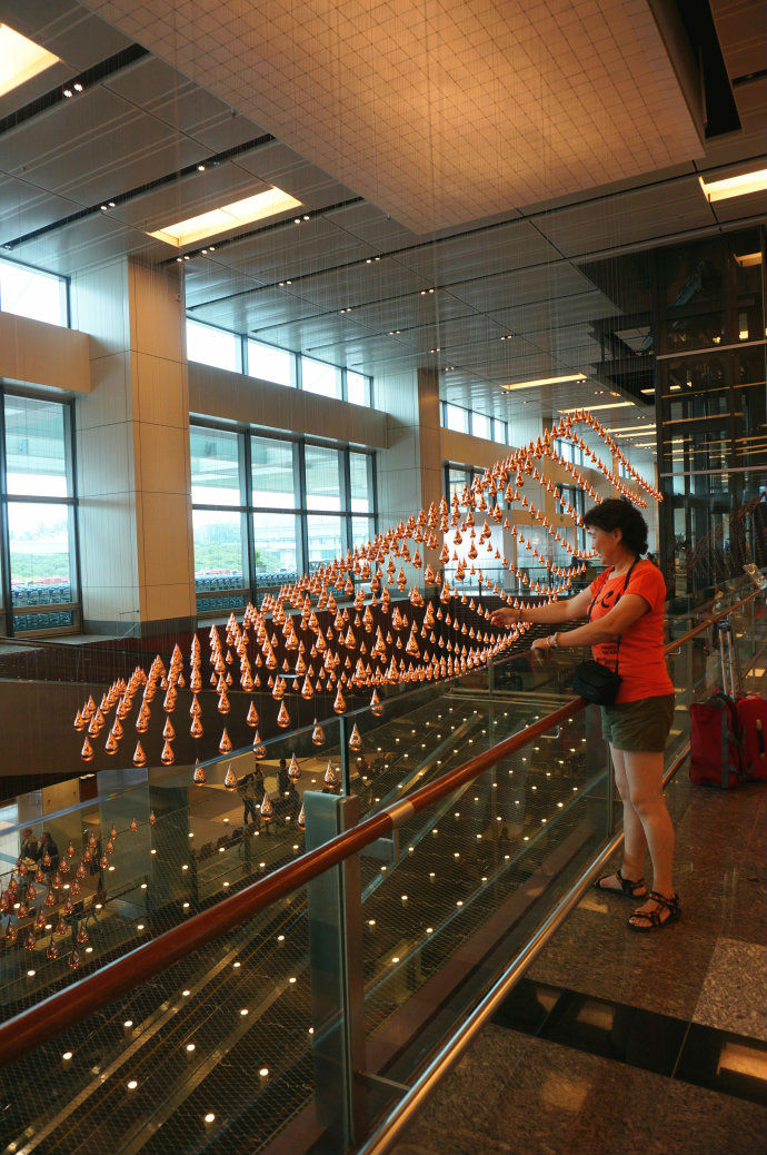 ↓樟宜机场。一组被透明鱼线吊着的小球球,变换着各自的高度组成不同的形状,挺好玩的。