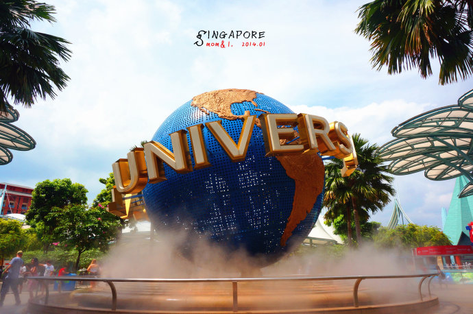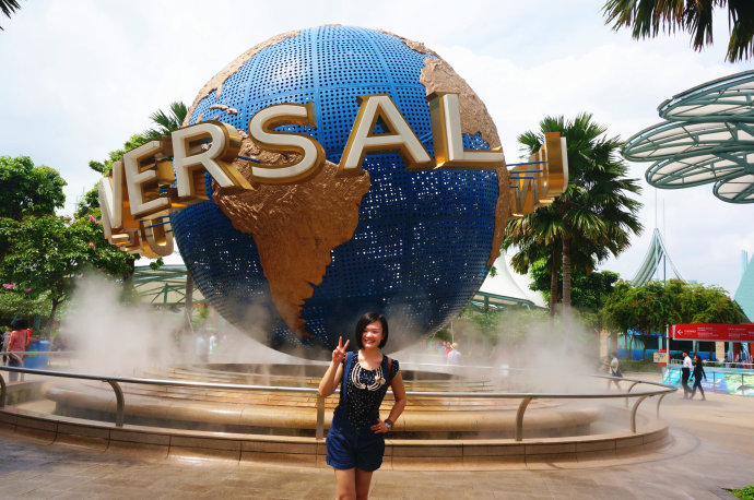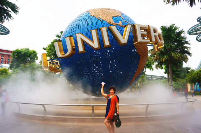 ↓和标志性建筑物的合影总归是要有的。环球影城门口的大地球仪,是世界上唯一一个带有新加坡国家地图的环球影城地球仪。