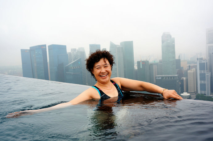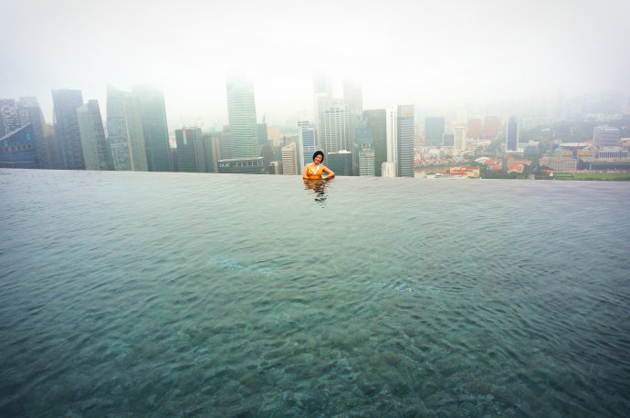 ↓无边泳池是酒店的最大卖点。57层居高临下,是不是有种一翻身就坠入万丈深渊的赶脚。