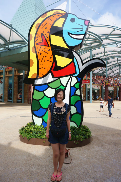 ↓狮城到处可见的狮身鱼尾像。不过圣淘沙上的这只,明显呆萌了许多。