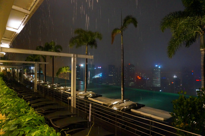 ↓无边泳池晚上11点关闭,刚刚清场便下起了大雨。东南亚的雨季真是可怕,雨水猛地像往下倒,说来就来,说走就走。