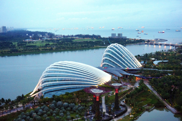 ↓窗外正下方,便是万国花园。时间有限根本都没过去。回来后看到有人站在那底下拍的照片,加上夜晚五彩斑斓的灯光,像极了阿凡达的神秘世界。