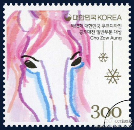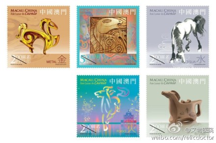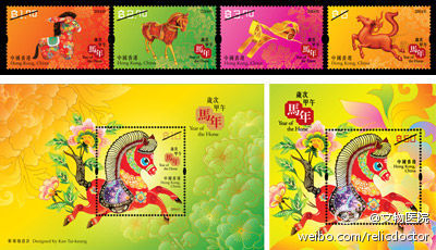 新邮政在08年开始推出第二个十二生肖邮票系列,马年纪念邮票是其中的第7套邮票。今年的邮票有3种设计,分别写上“祥”、“春”和“马到功成”的字样,颜色选择了鲜艳的黄色、绿色和粉红色。