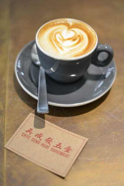 “再成发五金”锁定小印度边缘的德威路(Tyrwhitt Road),这里是传统五金店聚集的地方。咖啡馆藏身的老建筑还有剩下来的古早味,店主“不碰”建筑和原有铁窗,动过手脚的地方则尽量贴近建筑原来风貌,如粉刷相同的颜色。咖啡座采用各种五金装饰,自家调配的咖啡特设一款“Nuts n Bolts”,让人在浓浓咖啡及空气里弥漫的金属气味,追回昔日绵绵旧情。