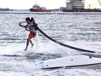 亚洲只有两个水动力飞行包,它可以带人飞向上空10米,这是一项非常安全的飞翔运动,游客可以自由控制飞行。而不久后,这项水上体验特权就会在新加坡被公众享用。设备将在10月被投入使用,可仅在9月中旬,就已有近200人排队预订体验。