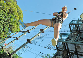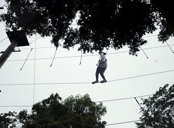该运动可在圣淘沙大山山顶体验,分为三个部分,悬空12米,行走空中只能依靠几根细细的绳子,但有一定安全措施来保障游客安全。