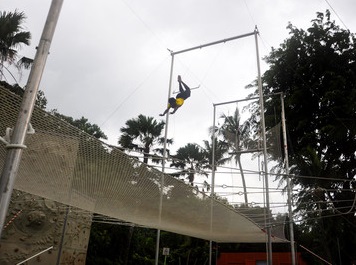 如果你曾渴望在空中舒适的飞行,在圣淘沙山的西乐索海滩,你的愿望就可以实现。首先你要先掌握好空中悬挂能力,然后抬起腿勾到棒子上,伸出手臂,用腿挤胃,接着完成翻转。在游客爬到平台的最高处后,之后的行动一定要听教官的指挥。