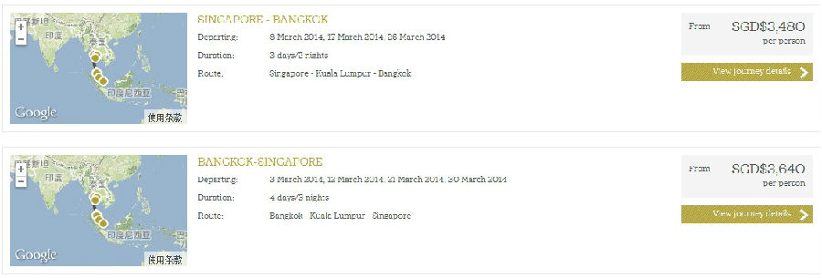 这辆亚洲最顶级,最豪华的梦幻列车——东方快车从曼谷出发,经泰国华欣、马来西亚槟城、吉打州、吉隆坡,然后抵达新加坡,这是全亚洲独一无二的富豪旅行体验,是全球的富豪和贵族们旅游最时尚的选择。