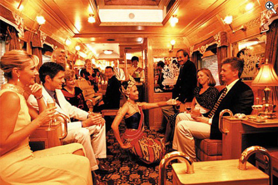 豪华、舒适、悠闲,乘客如同回到了18世纪的欧洲。从曼谷到新加坡,这列充满南洋风情的豪华列车,满足不少西方乘客追求往日情怀的梦想。坐在火车车窗旁,捧一杯香浓的咖啡,沿途风光如画卷般铺展于眼前。