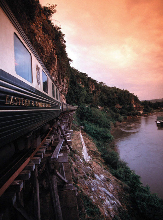 这是一列曼谷直通新加坡的列车,华丽得就像是一座随着铁轨前行的东方宫殿。经泰国华欣、马来西亚槟城、吉打州、吉隆坡,然后抵达新加坡。其设备和服务,完全参照五星级酒店标准,沿途的风景也如画卷展开一般,你可以捧一杯香浓的咖啡坐在车窗前欣赏窗外的风光。