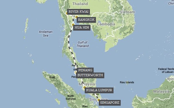 东方快车从曼谷前往华欣,经过泰国最狭窄与缅甸相接邻的地带,安静的华欣是泰国拉玛六世王室的避暑城市,眼前弥漫着古老的泰国风情。而后经过马来西亚吉打州,到处可见大面积稻田,还有马来传统的高脚屋村落,再走过槟城,一路经过保存完整的自然丛林、热带雨林、湖泊,空气中飘散着浓郁的绿木芳香到达吉隆坡,最后抵达新加坡。