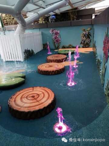 11000平方尺的奇幻花园主题游乐园中设有巨型昆虫、音乐花朵、10米高的树屋、会喷水的超大喷壶、以及各种动植物的模型。游乐场内干湿分区,家长可为孩子选择合适的游玩项目。