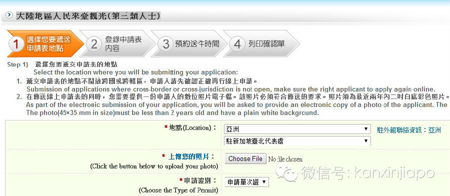 在新加坡生活,想去台湾旅游,赏美景尝美食?新加坡眼为您整理了在新加坡申请大陆地区人民来台观光(第三类人士)出入境许可证详细流程,供您收藏备用: