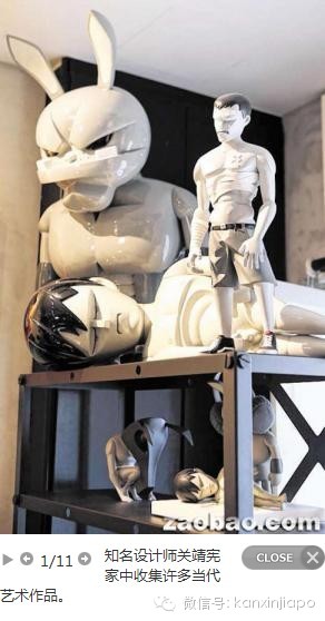 一楼的艺术品大多色彩艳丽造型俏皮,二楼则基调暗沉,这种布局显然是刻意而为。忙完了一段的关靖宪终于能坐下来,跟记者解释说,一楼是他接待客户、测绘图纸的工作场所,所以情绪须要被颜色提振,二楼则是休憩空间,肃穆的艺术品让他心绪恢复宁静。