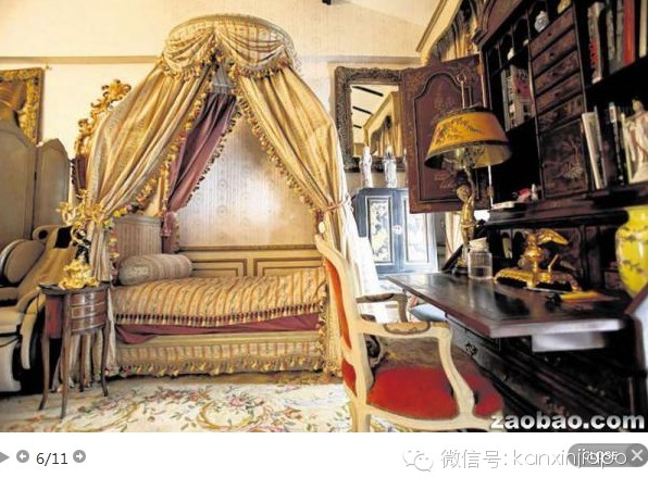 更叫人吓一跳的是二楼的卧室和起居室,东西方的混搭风格被他发挥到极致,更是许多名画、古玩和珍稀玩意儿的藏宝阁,藏品动辄有两三百年历史,比如他的睡床,便是法国17世纪的物件,而茶几上的花瓶是明代的景泰蓝。这些古董,都是黄荣榗在佳士得等拍卖行标来的。