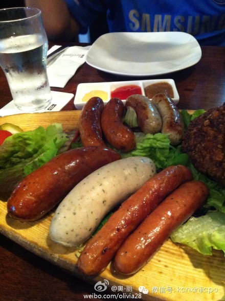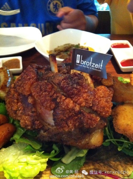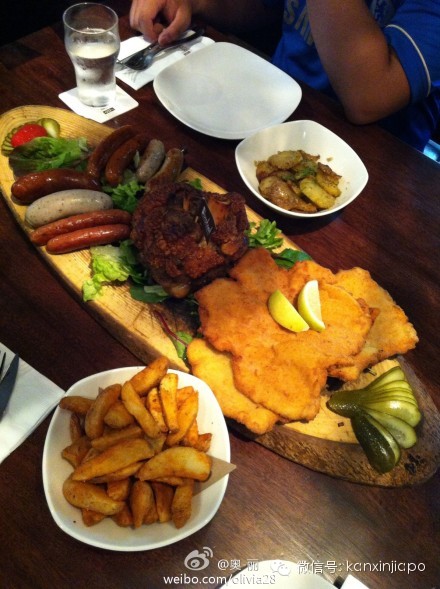 “肉祖宗们点了超大拼盘和披萨,德国猪手、香肠、炸猪排都狠好吃。” (@奥-丽)