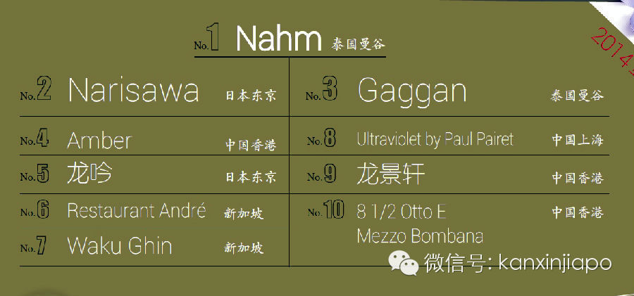 中国是今年榜单上的大赢家,在2014“亚洲50佳餐厅榜”上囊括16席,是拥有最多上榜餐厅的国家。这些餐厅分别来自内地、香港、台湾和澳门。