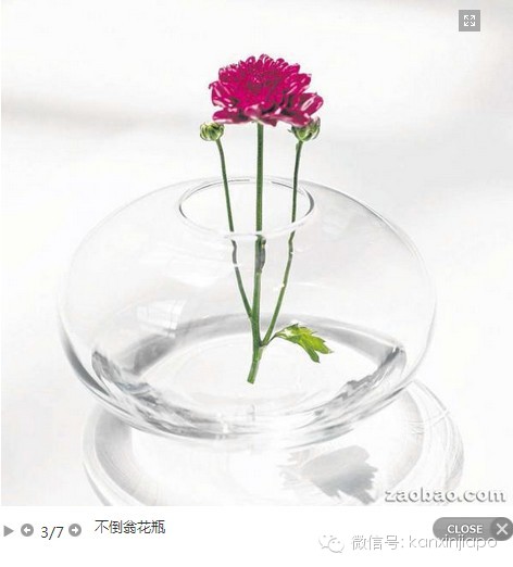 浑圆透明的花瓶能像不倒翁那样左摇右摆,但瓶子里的水却不会溢出来。