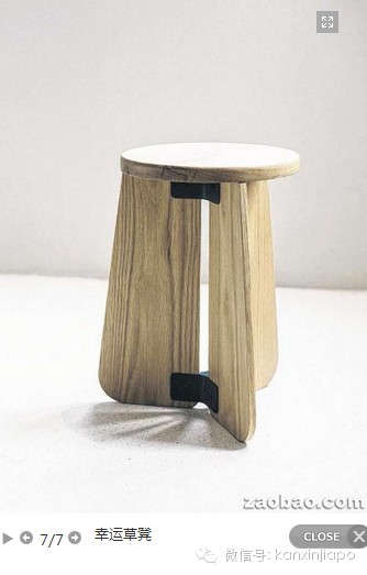 由栎木制成,像宜家家具一样平叠包装,买回家自己用铝铁装置,将凳子翻过来有三叶幸运草的形状。