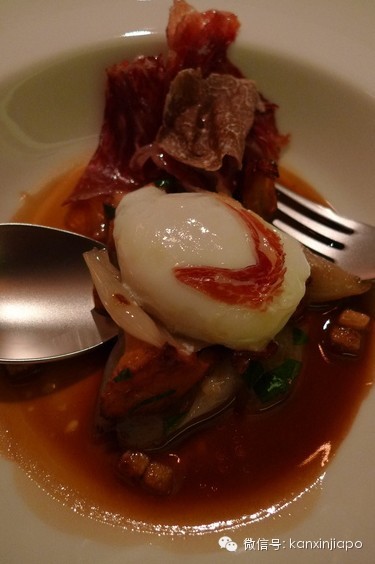 西班牙顶级火腿配上乌鸡蛋及意大利白松露。