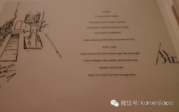 大厨每天都会依照食材和心情有不同的点子,听说这菜单每天Andre会绞尽脑汁每天现写现印!而且食材也会根据当地新鲜度的区别而调整。
