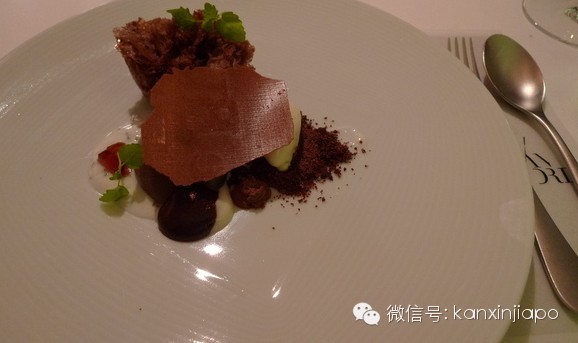 热巧克力配新鲜白芝士,冰淇淋与巧克力果冻互补,再点缀薄荷清香。