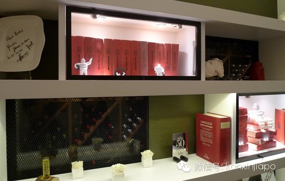 书柜里隐藏着一个温控酒窖,这里的法国酒全部是Andre在法国小酒庄挑选的。书柜上大本厚重的红皮书,就是经典珍藏的米其林美食宝典了~