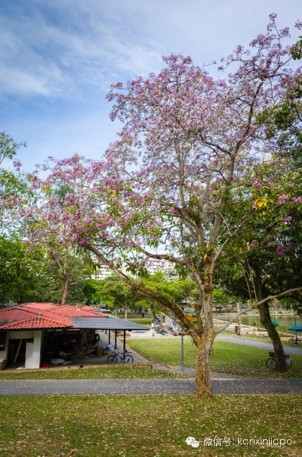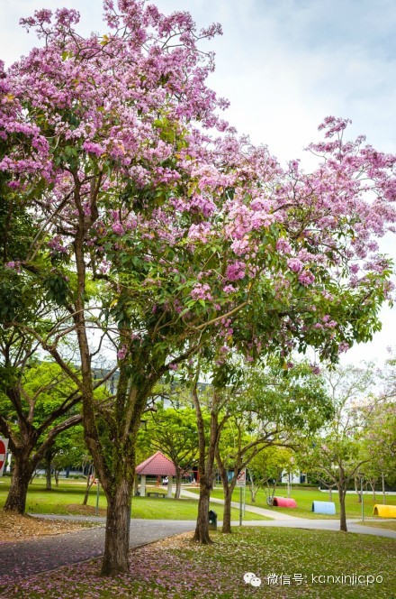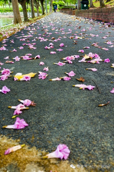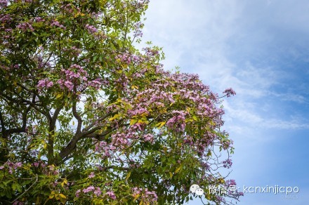 新加坡眼按:常年盛夏30°C的新加坡竟有落英缤纷之美景,生活在坡上的网友也有幸享受一把“开春”的感觉。最近网友纷纷拍到粉红色群花绽放,热闹缤纷,远看花团锦簇,近看婉约可人,充满春天气息。更有网友称,“看花不用去日本!”网友@旅微Triptiny称,新加坡的“樱花”树名为Mempat或者Mampat,中文叫越南黃牛木,学名是Cratoxylum formosum。和樱花开花的季节差不多,每年三月开花,今年因为久旱逢甘霖,开的格外茂盛,处处花团锦簇。另有网友称,还有一种花也很常见,学名为红花风铃木。紫薇科的红花风铃木每当开花,总是落尽树叶,然后以铺天盖地之姿整棵绽满嫣红,摇曳着铃铛花海,形成整株树只有花的壮丽景致,彩绘着春日中最美的生命色彩。当微风轻吹后,落英翩飞,树下散布着粉色点点的花瓣,漫步在这诗情画意的梦幻氛围,让人不禁醉倒在这难得的花之飨宴。