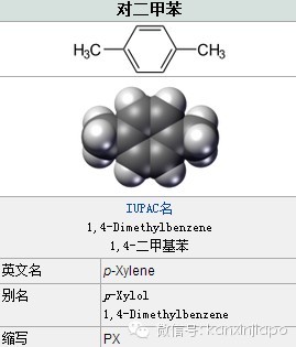 PX是para-xylene的缩写,中文学名“对二甲苯”,是一种液态存在、无色透明、气味芬芳的芳烃类化合物,尝起来有点甜。