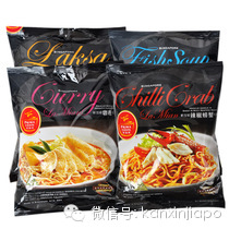 Laksa在新加坡街头是常见的小吃,但在国内就不是这么容易吃到了。 所以喜欢这个口味的朋友一定要买几包。其实说是方便面,这个面还是要煮的,而且最好还是要配上豆芽,海鲜,鱼豆腐等配料,那就是一碗正宗的新加坡laksa方便面。价格大概3新币一包。其他口味还有新加坡咖喱面,辣螃蟹面,鱼板面,可以都品尝一下。但是我仔细看过成分,它的油是棕榈油,所以还是少吃。