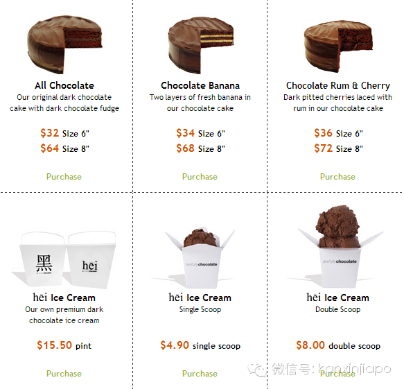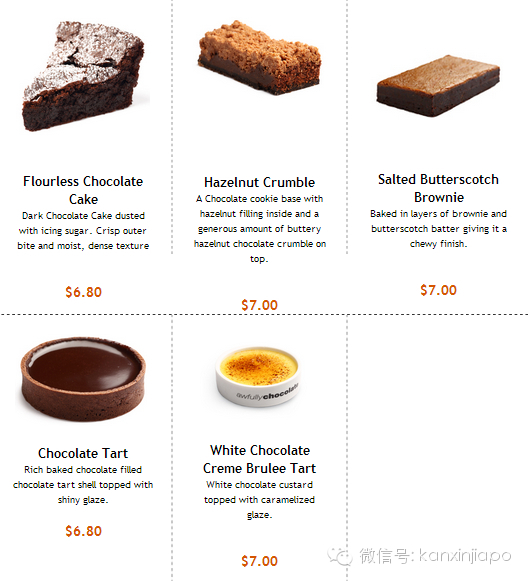 Awfully chocolate 在新加坡已经成立十余年,是一间至今依然只售卖巧克力蛋糕、冰淇淋外带的专卖店。蛋糕分3种口味:巧克力原味、朗姆酒樱桃、香蕉,其中以朗姆樱桃销售最佳,为店内主要的明星商品。
