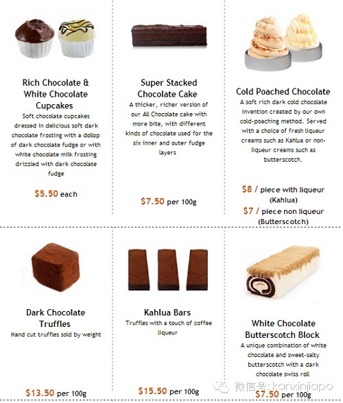 Awfully chocolate只有圆形蛋糕,在情人节和母亲节曾推出过心形蛋糕,除此以外没有别的形状了。品牌的理念即是不迁就顾客,也不会做任何形式的对外广告,十年前在新加坡一直都是这样。