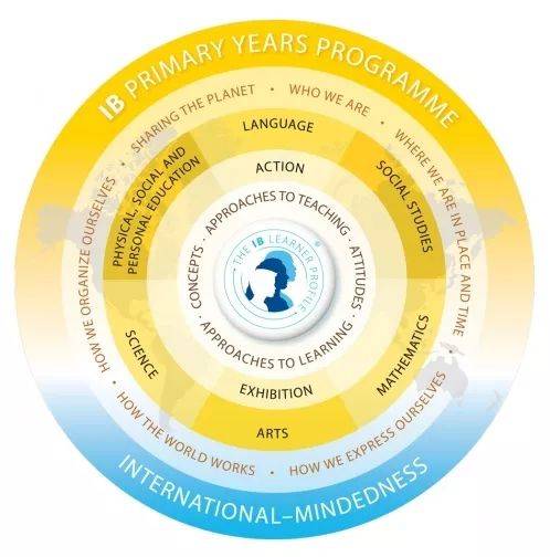 该计划旨在鼓励学生将所学知识与现实世界联系起来,这是一个具有挑战性的框架,包括语言习得、语言与文学、个人与社会、科学、数学、艺术、体育与健康教育与设计等八个学科组。