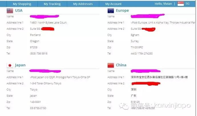 我常用的是USA,只要记住 你的编号就好,也就是SG-XXXX-XXXX,其它的地址所有的Vpost user 通用。