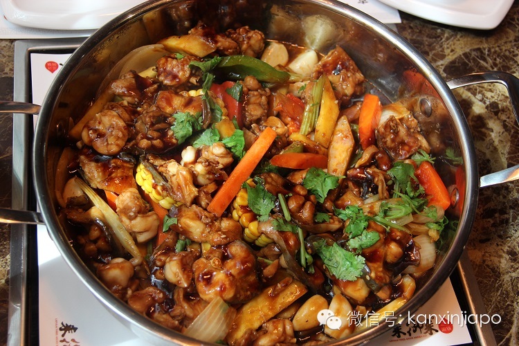店家大力向我们推荐了鲶鱼和牛蛙,然后我们自己又加了一份鸡翅,做成一个三样组合锅。制作过程大概13分钟,其中颇为特别的部分是每一个锅边都有一个小小的计时器,每隔几分钟服务人员就会走过来按键调整温度,并时不时打开锅盖除去水蒸汽。据店家说这样做出来的焖锅最为入味同时保证了食材的鲜美,而且酱汁不会被水蒸气稀释掉。