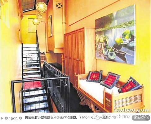 莫尼画廊小旅店(Moni Gallery)店如其名,里头张挂不少油画,陈设原创艺术品和雕塑;卧室、楼梯间、客厅等地方,都是“画风”阵阵。