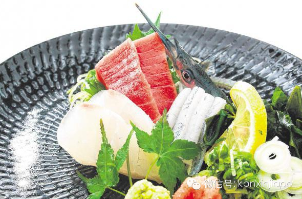 生鱼片有本地一般餐馆难得一见的柴鱼,外皮微烤过,内里生鲜,口味重,质感很绵。另外两种鱼是质感爽口的针鱼(Sayori)和软嫩的鲷鱼。传统生鱼片单用酱油和山葵提味。师傅花些巧思,让葱花蒜片中和柚子酱,中和柴鱼微腥,让感官更集中于它的肉质。鲷鱼则是用竹盐提味,简单的手段为生鱼片融入新奇味道。