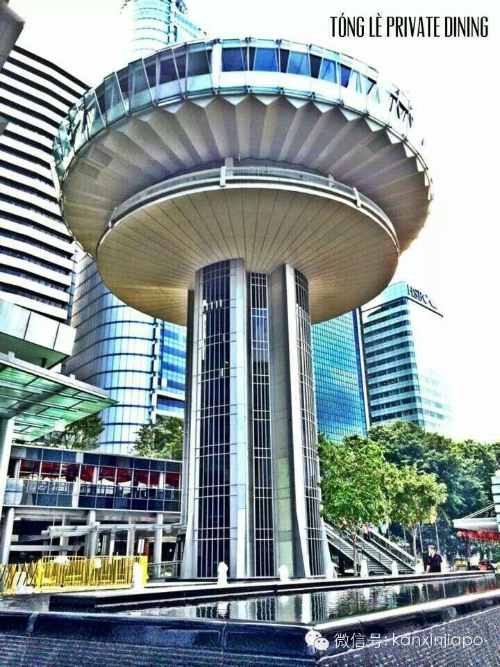 当听说是要聚餐于同乐贵宾楼时,我们都万分激动,因为她坐落于CBD(中央商业区),再加上OUE Tower本身的历史底蕴——她是一幢由新加坡现代派的建筑公司 K. K. Tan & Associates 设计并建造于1970年代的旋转塔楼。并在1980年代由老一辈的新加坡餐饮人经营中餐厅多年,听说当时也是门庭若市,给很多新加坡人留下许许多多抹不去的记忆。直到后来的2007年,Urban Redevelopment Authority (新加坡城市重建局)正式宣布其为不可拆除的现代优秀建筑。