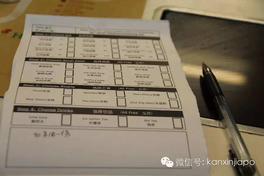 我尝了一下,汤底很香,几本吃不出油,味道鲜而不腻。这个老汤涮出来的食材都能保持了本身的特有味道同时还有了骨汤的鲜香,的确值得赞一下。整体上来说健康的元素很足,味道上主要充分食材本身的香味,对于吃惯了重口味大分量火锅的人来说,这不妨是一种新的体验。这家店里还有烤鱼和点菜的菜单,不过一份火锅两份肉对我来说已经够了,也就没有再多吃,这样下来一共才12新币。估计老板要恨我的吧。在这坐了这么久就吃了一份便宜的小火锅。不过,一个人吃,还真是适合啊。