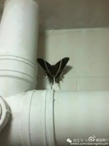 今早在樓道拍到的一隻 黑色的 大 蝴 蝶