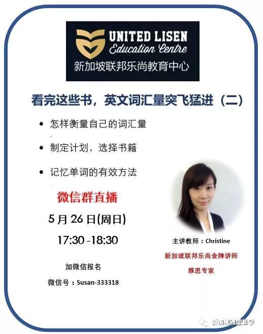 微博:查找“新加坡联邦乐尚雅思英语中心”