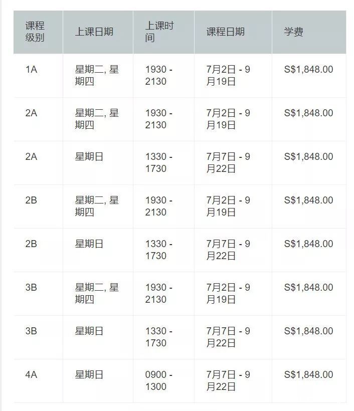 7月份就开始,学英语宜赶早不宜迟哦~另外,针对不同的需求,新加坡英国文化协会还推出其余三门课程。