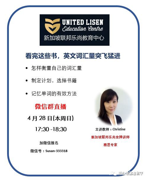 微博:查找“新加坡联邦乐尚雅思英语中心”