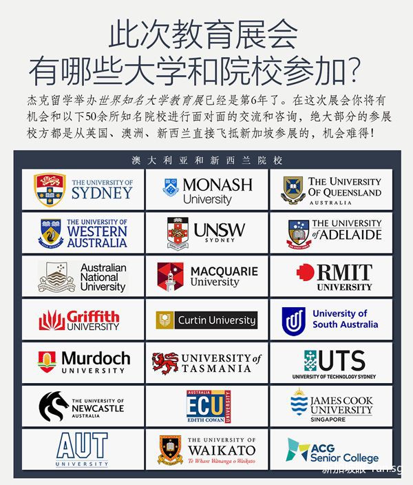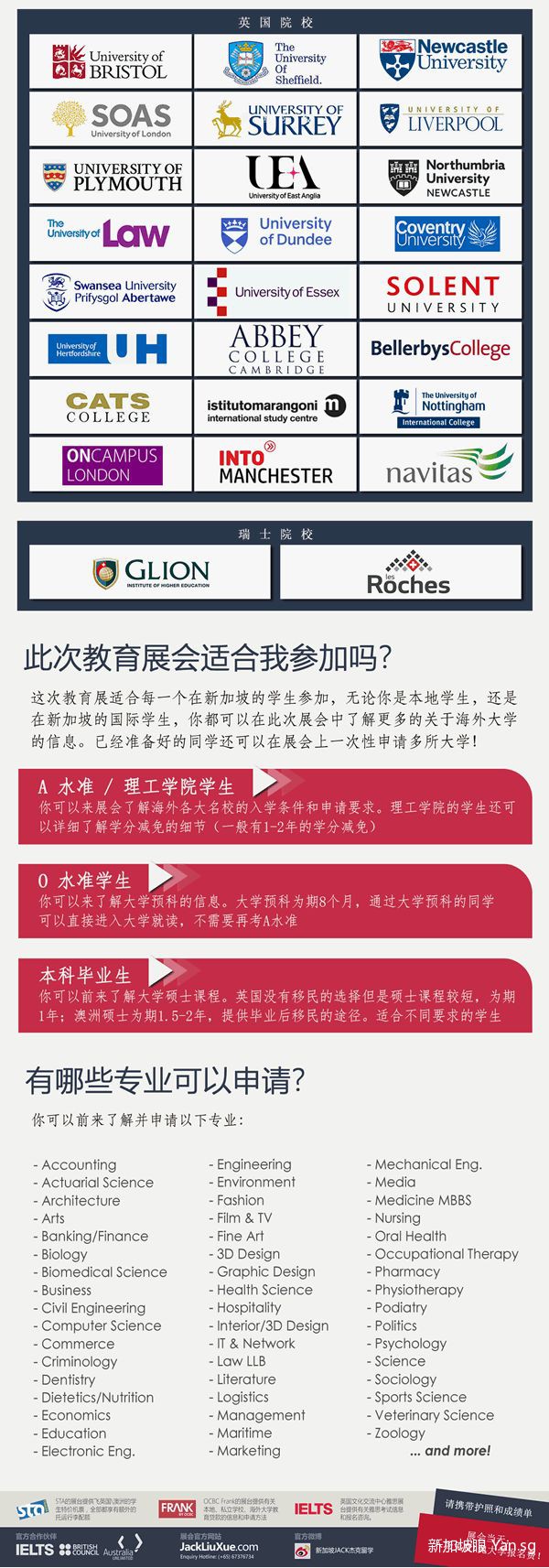 2019年的第二场英国澳洲大学展来新加坡了!这次亮点有澳洲排名第一的澳洲国立大学,孕育澳洲五位总理的悉尼大学、名校UNSW、世界排名前50的昆士兰大学、英国布里斯托大学、利物浦等一流名校。还有世界三大酒店管理学院之一的格里昂酒店管理学院!