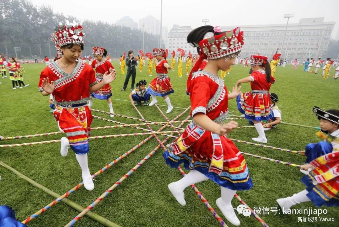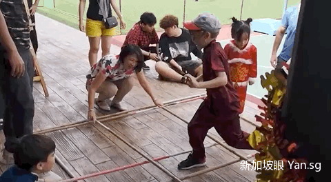看,孩子们居然在跳竹竿,家长都不敢跳,怕夹着脚,孩子们却玩得不亦乐乎,看来是平时没少练哦。