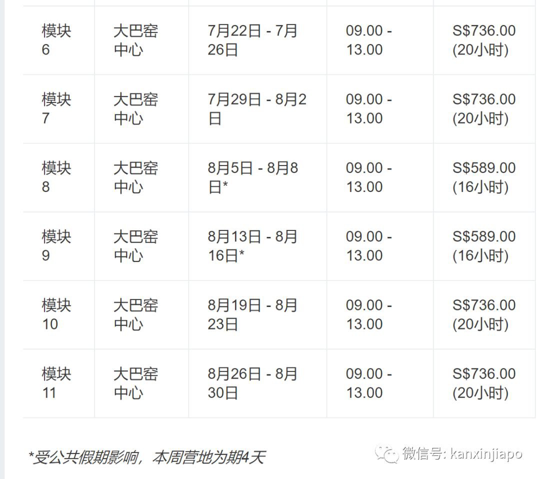 每周五天(周一至周五)上课时间:9:00 – 13:00 课程费用: 2018年每周费用:736新币学生准证申请和ICA办理手续费:350新币不予退还的报名费:150新币学费保障计划:总费用的1%(不少于25新币)校服费(3套衬衫):45新币上课地点在纳皮尔路中心(具体地址见文末)。