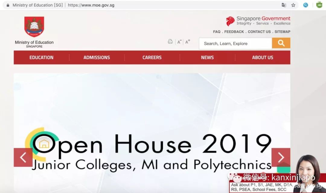 鉴于最近新加坡的假网站有点多,为大家展示下教育部网站,右下角有个Jamie姐姐,大家别认错了啊: