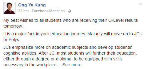 新加坡教育部部长王乙康,也曾在2017年O水准成绩放榜之际发长文总结:初级学院和理工学院都不错,建议考生从兴趣出发,做出明智的选择。