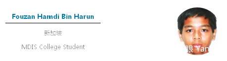 “MDIS的老师不光是有经验和关心我们,他们也很乐意去帮助我们解决我们遇到的问题。 不管是学习上还是生活上,他们总是再那里为我们提供帮助。通过他们的经验和认真地教学,我以 L1R5 of 10的成绩考入了 Serangoon Junior College. 感谢 MDIS College!”