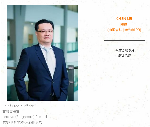 我毕业于中国人民大学商学院,获得经济学硕士学位。我曾先后担任联想集团西部区商务经理,亚太区、欧洲中东非洲区信用高级经理,新兴市场信用总监及全球首席信用官等职务,拥有15年以上的管理经验。我于2007至2010年被派驻欧洲,帮助集团安全度过金融危机冲击,我于12年派驻新加坡至今,领导一只由多国专家组成的全球信用管理团队, 全面负责集团风控战略,信用体系建设,供应链融资,以及其他资金管理工作。